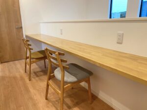 ・2人並んでもゆったり:お子様の宿題を見たり、ご夫婦で並んで作業をしたりするのに十分な広さです。