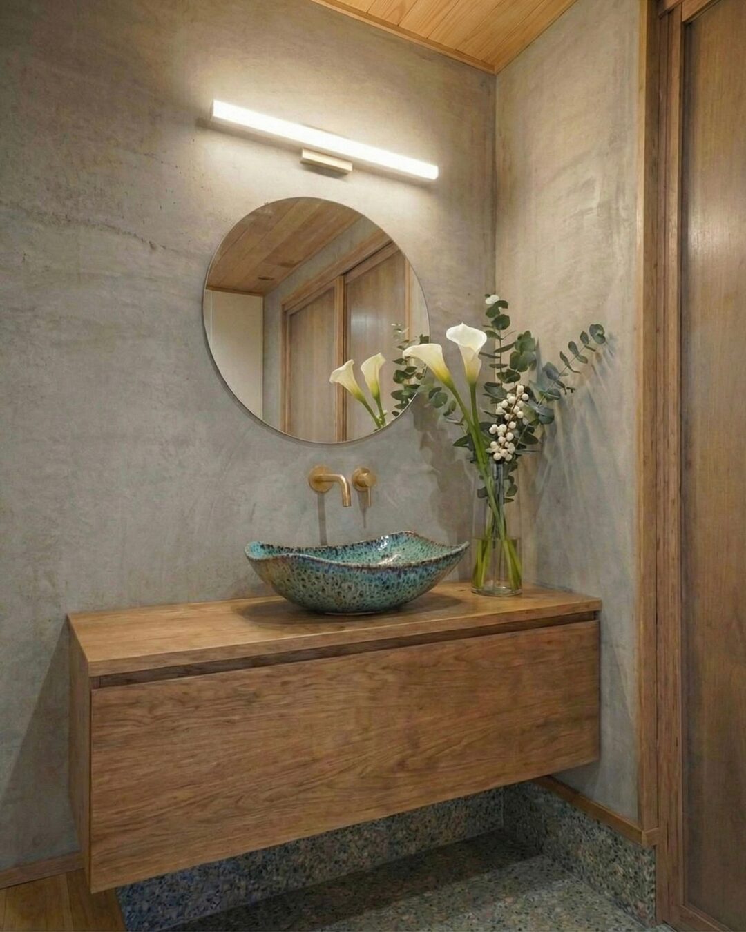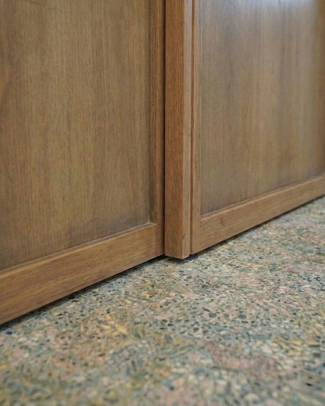 石材の質感が途切れることなくフラットに続くため、視覚的に空間がより広く、洗練された印象になります。