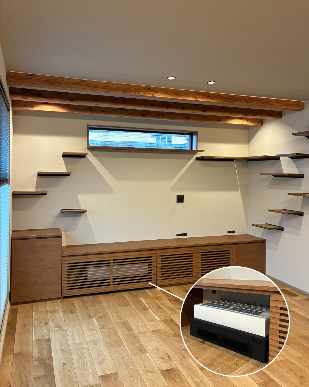 そこで、エアコンを造作家具の中にすっきりと格納しました。
