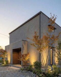 この住まいの顔となる外観は、落ち着いたグレーの塗り壁をベースにしています。